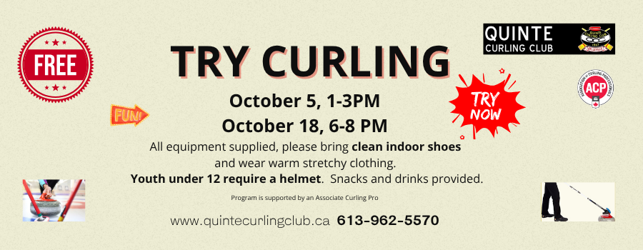 The Quinte Curling Club (QCC) is a non-profit organization, providing opportunities for curling and social interaction within the Quinte area, while taking an active role in the development of new curlers and the promotion of the game.