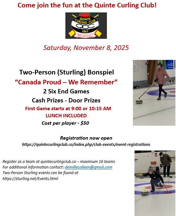 For more information contact quintecurlingclub.gmail.com or by Phone: 613-962-5570